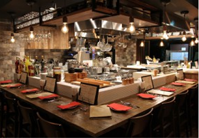 すべてのお席がお店の中央の炭火グリルを見渡せる特等席です。メインのお肉が焼きあがるシーンをご覧いただきながらお食事をお楽しみください。